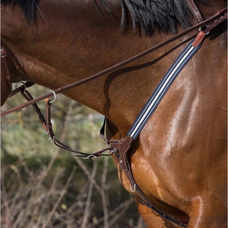 AntaresBreastplate with bridge in grained leather and elastic, with martingale attachment.