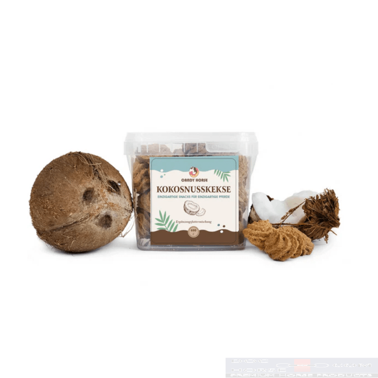 Small coconut flavoured cookies, ideal as a quick and handy reward. Without additional sugar.