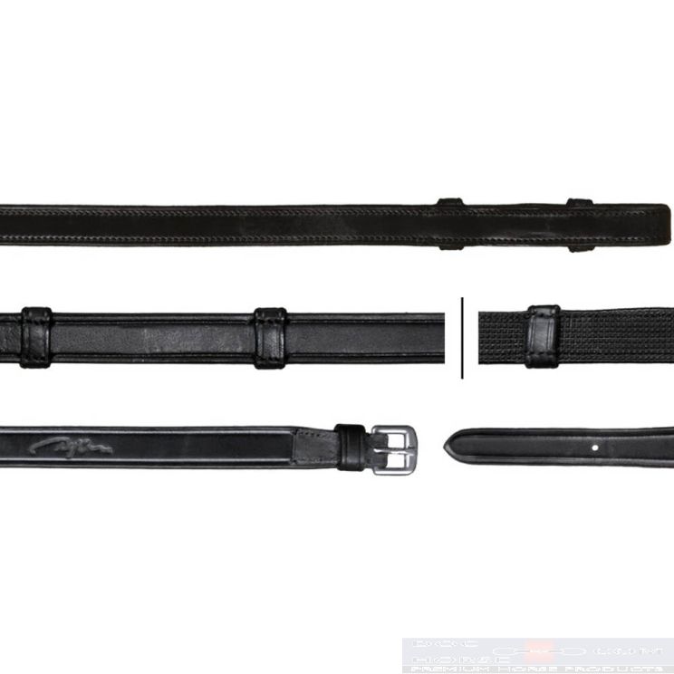Dy'onSupple reins from extra soft leather with rubber grip lining. Hunter reins with 7 leather loops.