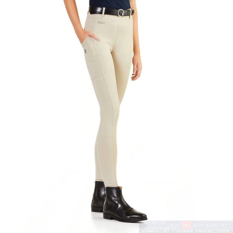 Ego7EGO7 Jumping leggings, with flattering high waist design and roomy side pocket. Superior performance and fit guaranteed thanks to the signature super comfortable material, highly stretchable and compressive, conceived for sports. Knee grip patches offer ideal contact with the horse and stability.