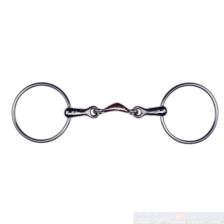 Gemaakt van hoogwaardig roestvrij staal met een koper tussenstuk in ¼-moon (lozenge) vorm. De koperen inzet stimuleert speekselvorming en ontspanning, terwijl de ¼-moon de druk gelijkmatig verdeelt.