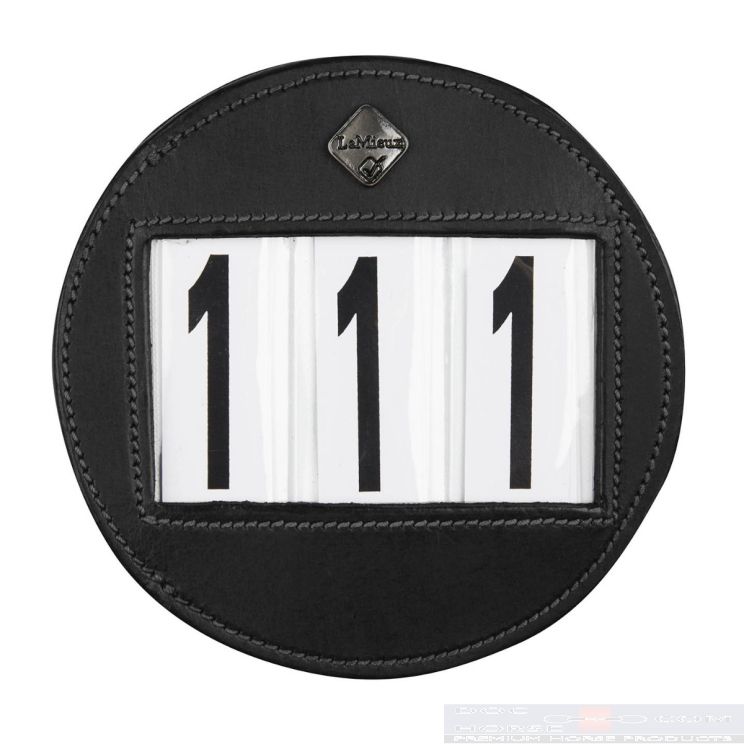 Luxury premium leather number holder for competitions. Adds a touch of class to any bridle. Hook and stud fastening loop provides a secure fit. 10 cm diameter.