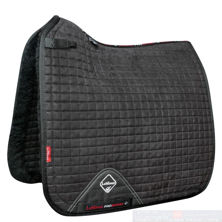 LemieuxThe new range of Dressage squares for the sensitive horse. The classic LeMieux cut lined with super soft Bamboo fabric and finished with a luxurious Merino+ (30 mm) trim on the outside edge.