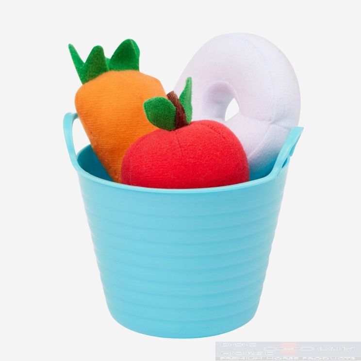 LemieuxIn this cheerful plastic treat bucket you'll find delicious snacks: a soft fabric carrot, a juicy apple and refreshing peppermint.