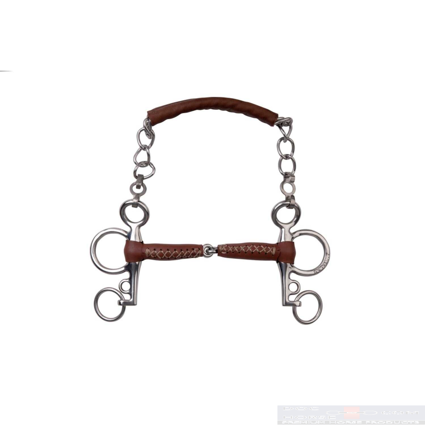 MetalabMetalab pelham bit with a single jointed leather mouthpiece. The bit has short shanks, including curb chain