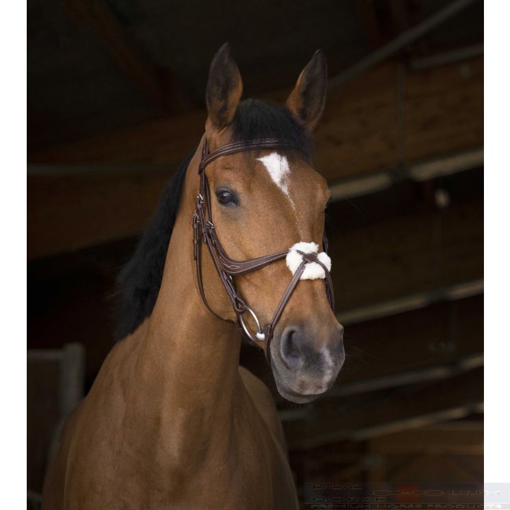NortonBridle made of buffalo leather with headpiece, lined with cowhide. Noseband and browband with decorative stitching.