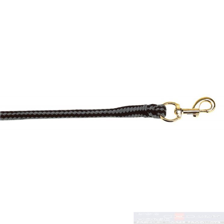 Two-tone soft textured polypropylene rope, with brass plated swivelling snap hook.
