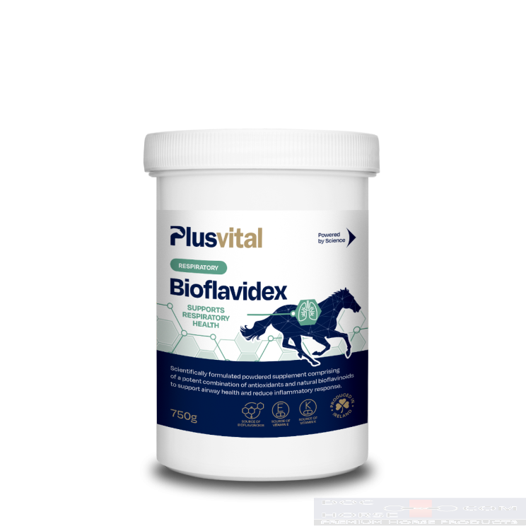 Plusvital Bioflavidex is een wetenschappelijk geformuleerd poedervormig supplement met een krachtige mix van antioxidanten en natuurlijke bioflavonoïden, ontwikkeld ter ondersteuning van de luchtwegen bij paarden.