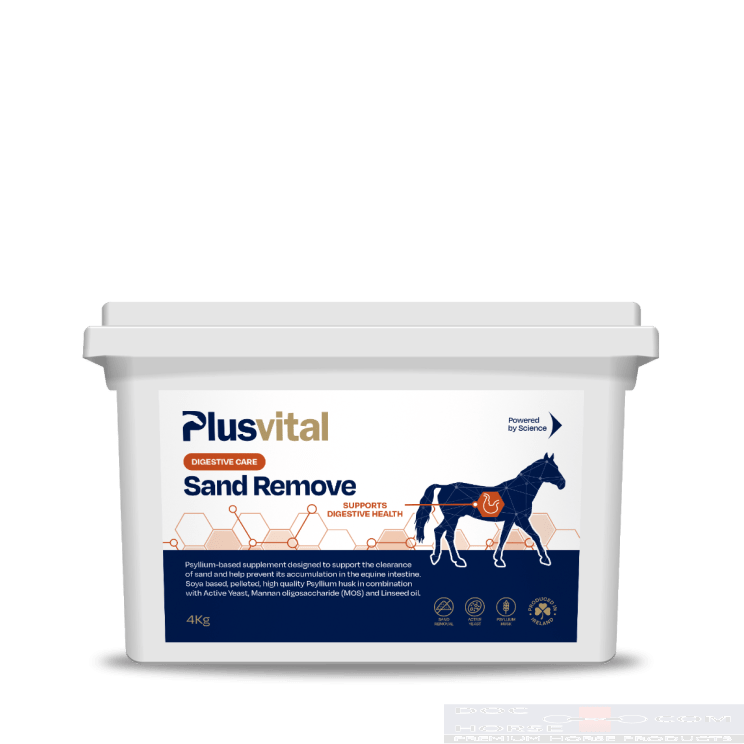 Plusvital Sand Remove is een op psyllium gebaseerde, gepelleteerde aanvulling die is ontwikkeld ter ondersteuning van de natuurlijke afvoer van zand uit de darmen van het paard en helpt ophoping te voorkomen.