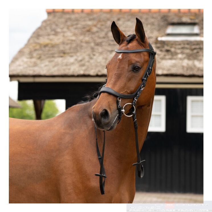 PresteqThe bridle follows the contours of the horse’s head and evades important nerves, muscles, bones and joints. Without hindrance from the bridle, the horse will be able to optimally focus on his task and get the best connection possible with its rider.