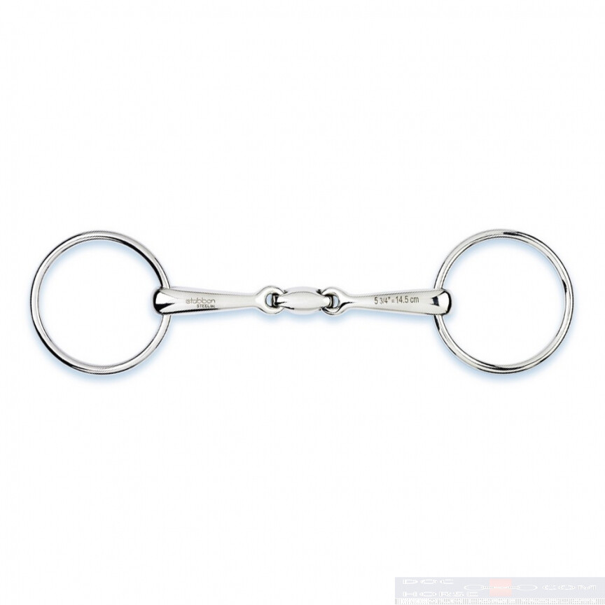 StübbenTESTER maat 13.5 cm. Deze dubbel gebroken watertrens vormt zich naar een ongebroken trens wanneer er meer druk op de teugels wordt genomen