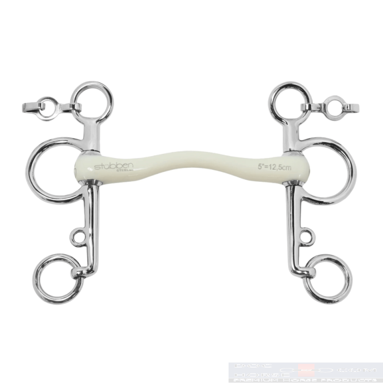 Het mondstuk van de Fine Line Flex Pelham is gemaakt van flexibel, voedselveilig PU en biedt een warmer gevoel in de mond, zelfs bij lagere temperaturen.