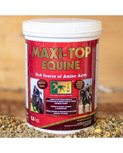 De aminozuren in Maxi-Top Equine zijn van plantaardige oorsprong en worden gewonnen uit Erwteneiwitisolaat, geëxtrudeerde sojabonen. Dit zijn plantaardige bronnen. Maxi-Top bevat belangrijke aminozuren waaronder: L-Cysteine, L-Threonine, Methionine, L-Valine, L-Isoleucine, L-Leucine. Overige aminozuren die zijn toegevoegd zijn: Alanine, Arginine, Asparaginezuur, Glutaminezuur, Glucine, Histidine, Isoleucine, Leucine, Lysine, Phenulalanine, Proline, Serine, Threonine, Tyrosine, Valine, Custeine, Cysine, Methionine, Tryptofaan.